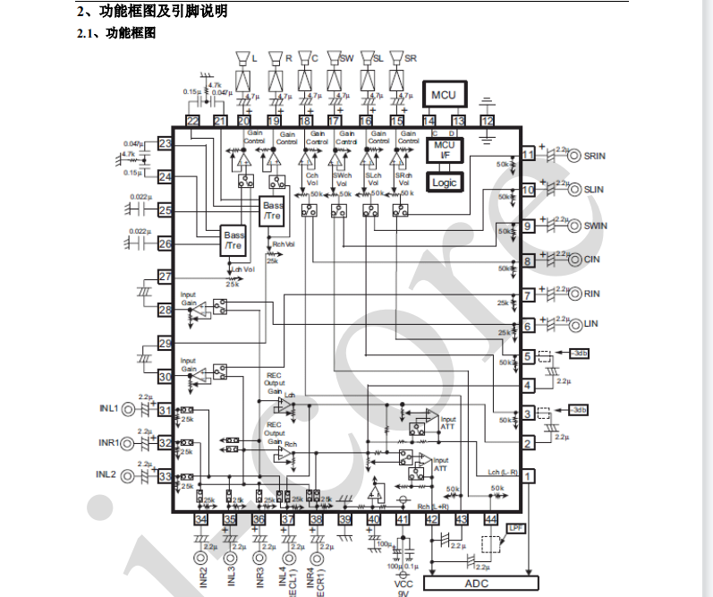 帶四輸入選擇器的6通道音質處理器